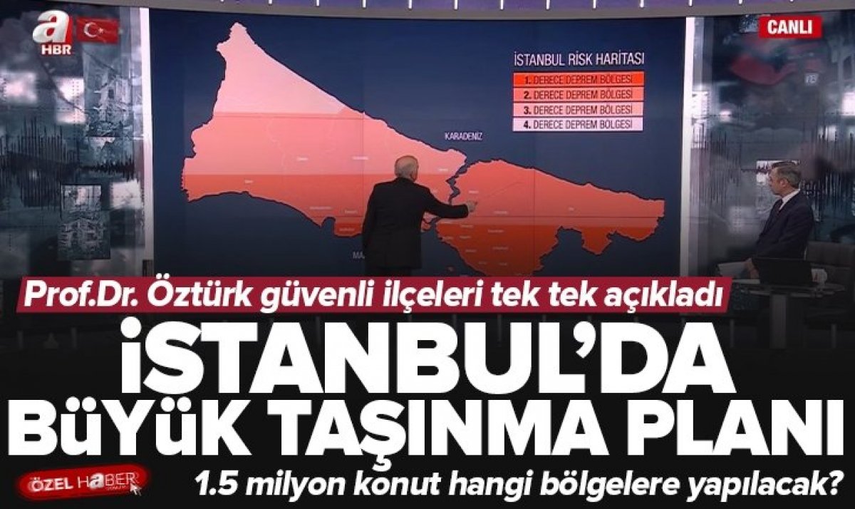 Kahramanmaraş'ta yaşanan depremin ardından İstanbul'da da beklenen büyük deprem için devlet harekete geçiyor. Bakan Murat Kurum yaptığı açıklamada İstanbul'da 1,5 milyon riskli konutu hem Anadolu hem Avrupa yakasına taşıyacaklarını belirtti. Bu büyük projeye ilişkin A Haber ekranlarına konuk olan Deprem uzmanı Hüseyin Öztürk değerlendirmelerde bulundu. Öztürk projenin kulağa çok hoş geldiğini ancak sürecin zorlu olacağının altını çizerken "İyi bir ekiple deprem alanlarındaki betonlaşan yerler yeşillendirilebilir." ifadelerini kullandı. Öztürk ayrıca İstanbul'da nüfus artışının artık daha fazla olmaması gerektiğini vurgularken şehrin taşınabileceği alanı da harita üzerinden gösterdi. İşte İstanbul için büyük taşınma planının olası detayları....